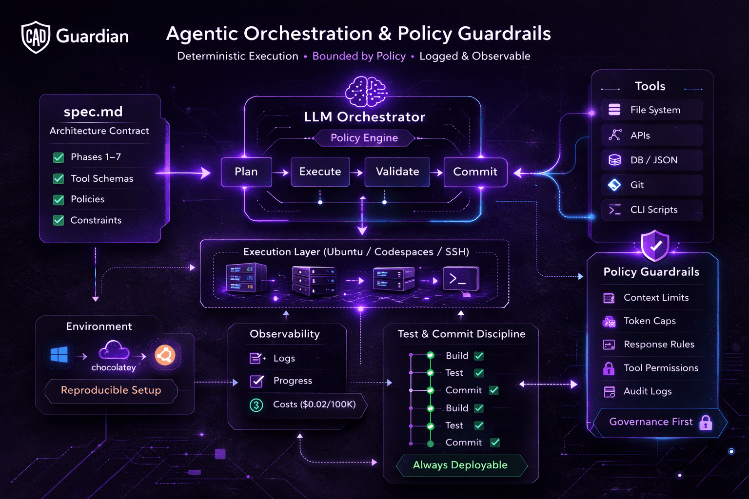 Most AI agent builds I’m seeing right now look impressive. Until you look at governance. In development and construction technology environments, instability compounds quickly — especially when automation touches tooling, filesystem, and execution layers. So I rebuilt my approach around one rule: Spec before execution. • spec.md defines intent • policy.json governs context, token limits, and approvals • Commits must build and pass tests before merging • Logs and telemetry are first-class • Cost is bounded and observable The result is an agent architecture designed for reliability — not novelty. If you care about scalable automation in infrastructure-heavy environments, I documented the full breakdown here: Spec > vibe.