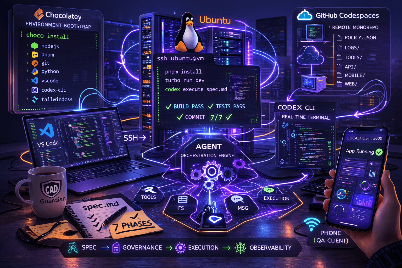 I led the build across 7 spec phases with Codex CLI 5.3, treating the repo like infrastructure: